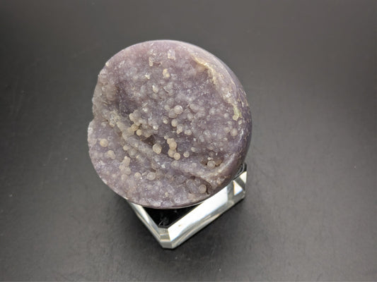 The term "Grape Agate" is used in the market to describe purple clusters of small quartz crystals exhibiting a botryoidal (spherical) structure. From a mineralogical standpoint, it's important to note that grape agate is not technically an agate; rather, it is botryoidal purple chalcedony.
