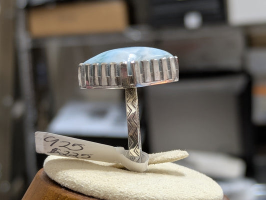 Sterling Silver Larimar Statement Ring Sz. 10