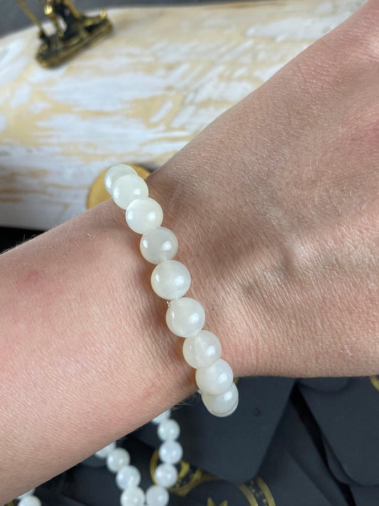 White Moonstone Crystal Bracelet- 7 inch elastic bracelet