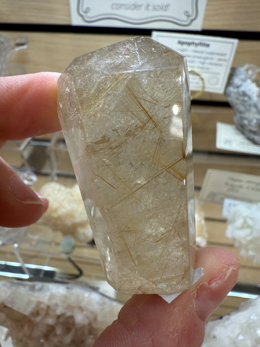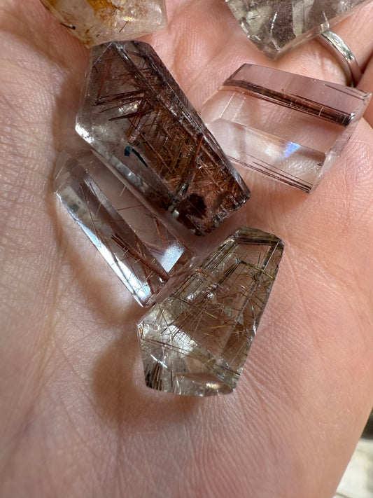 Rutilated quartz stands out as a type of quartz characterized by the presence of needle-like inclusions of rutile. Its inclusions typically exhibiting golden hues, although variations include copper red, silver, or deep black.