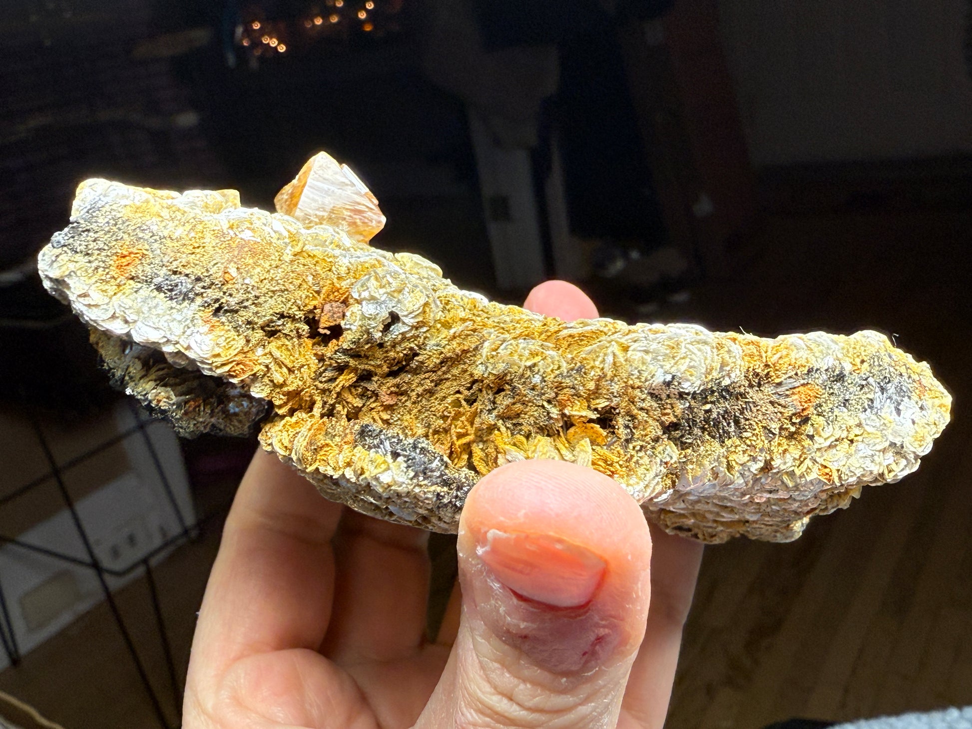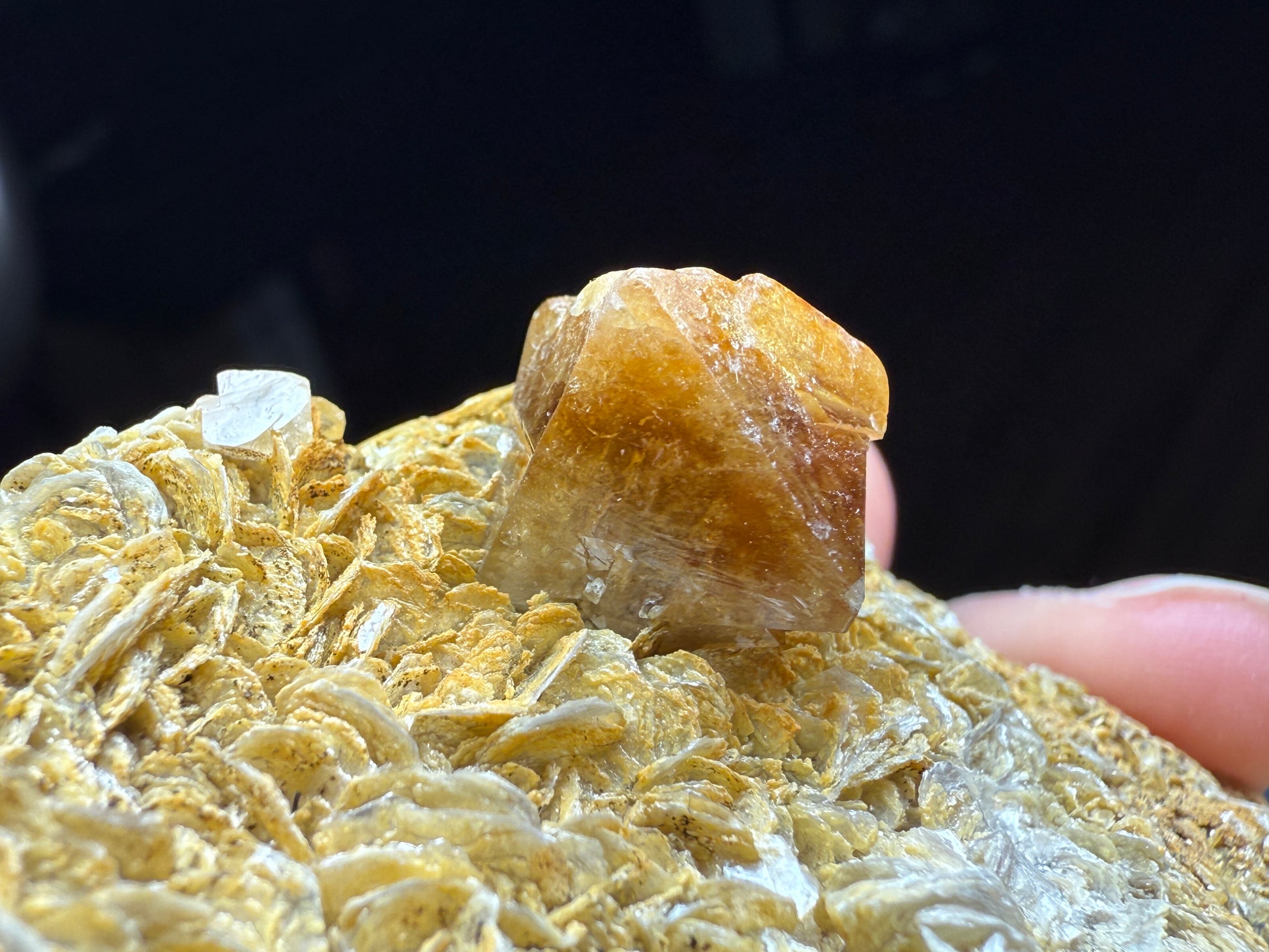 Extremely glassy Scheelites along matrix of mica and another unidentified mineral.